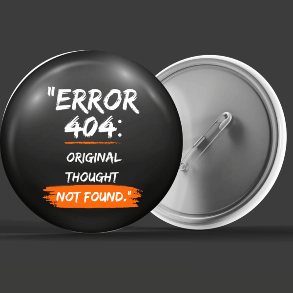 Set against a gray background, the bold white and orange brushstroke fonts give it a playful yet sarcastic tone, mimicking a website error page to humorously comment on a lack of creativity or originality. Great for stickers, memes, or creative commentary pieces.